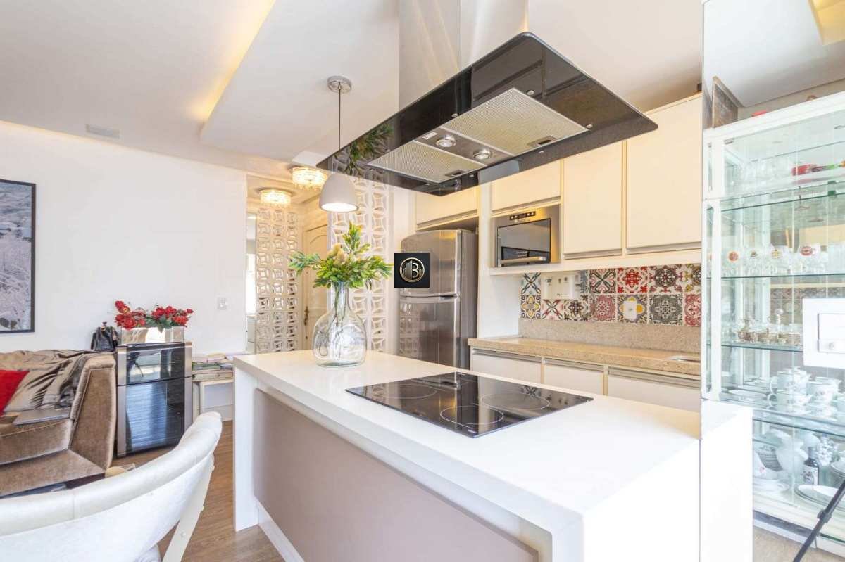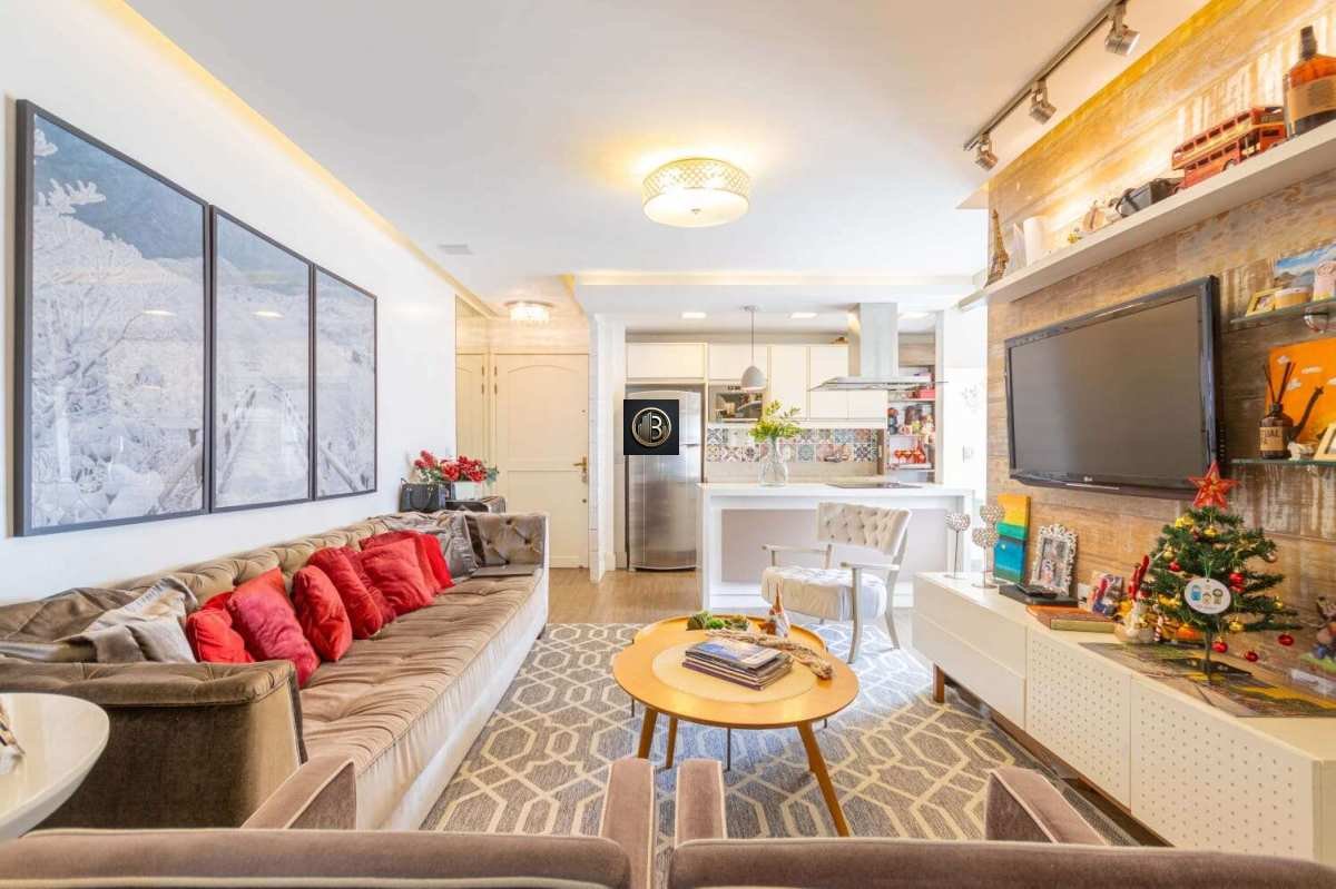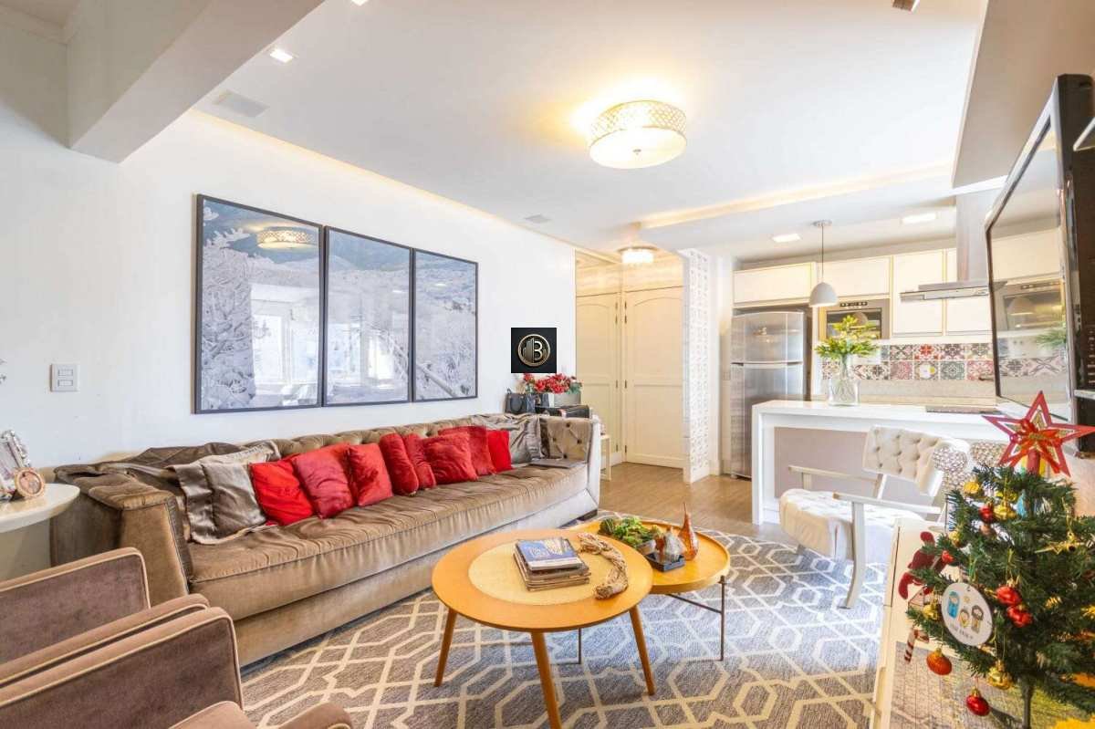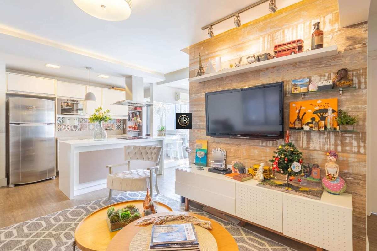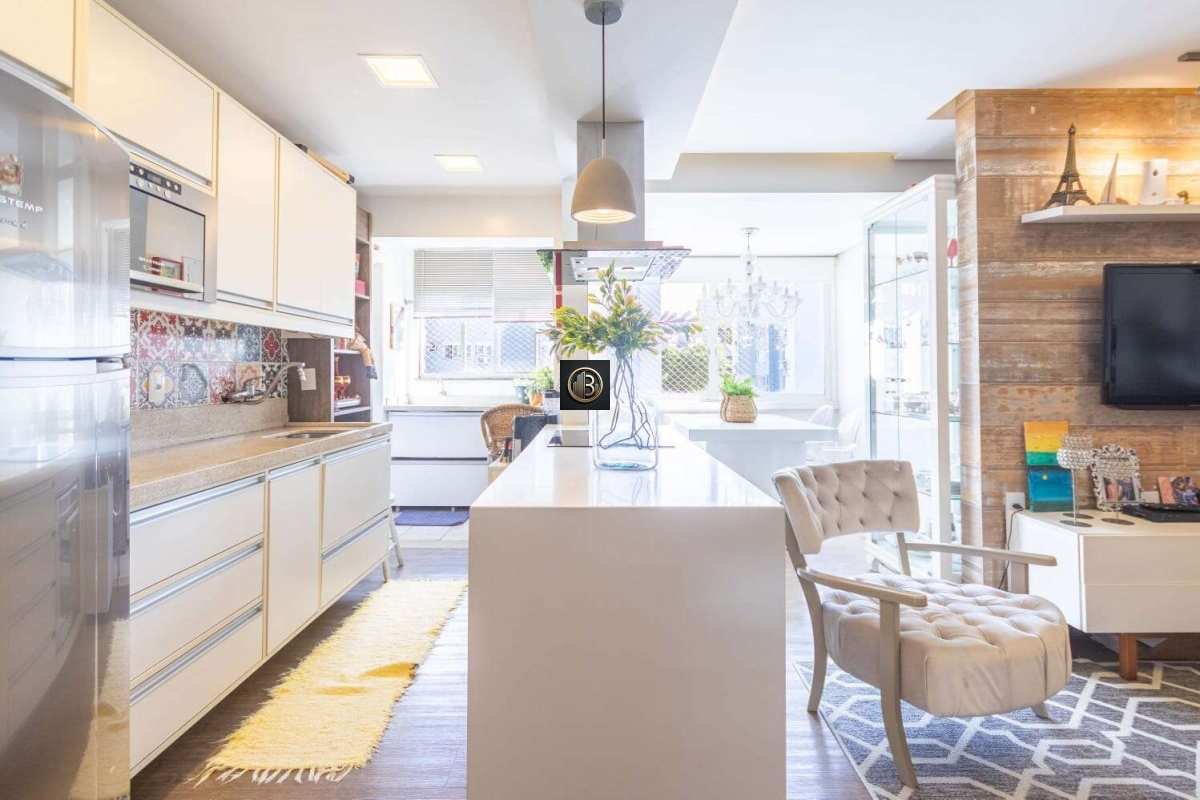 Com 72m² privativos, o imóvel oferece um living aconchegante para dois ambientes, integrado à cozinha americana — ideal para quem valoriza praticidade e momentos de convivência. Conta ainda com área de serviço e banheiro auxiliar.
