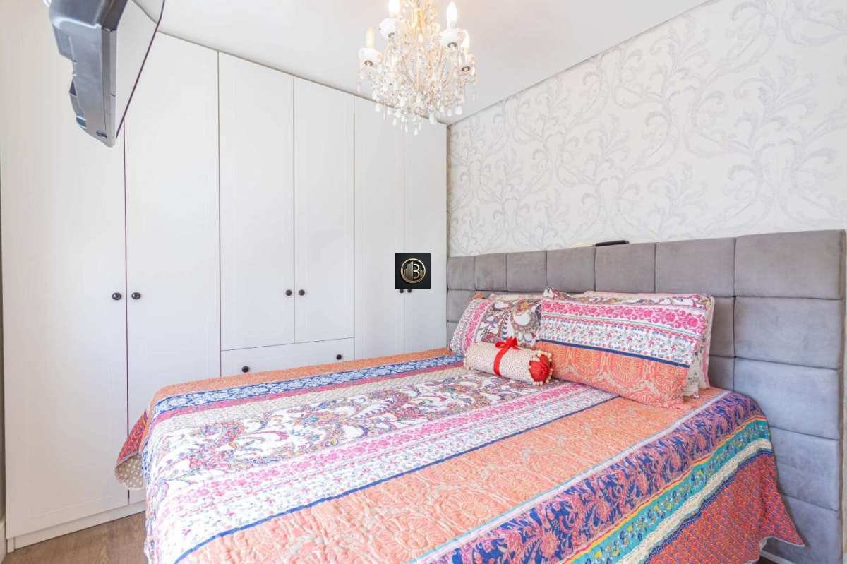 Dispõe de vaga de garagem coberta e escriturada e está em prédio com portaria 24h, salão de festas, quiosques com churrasqueira e playground.