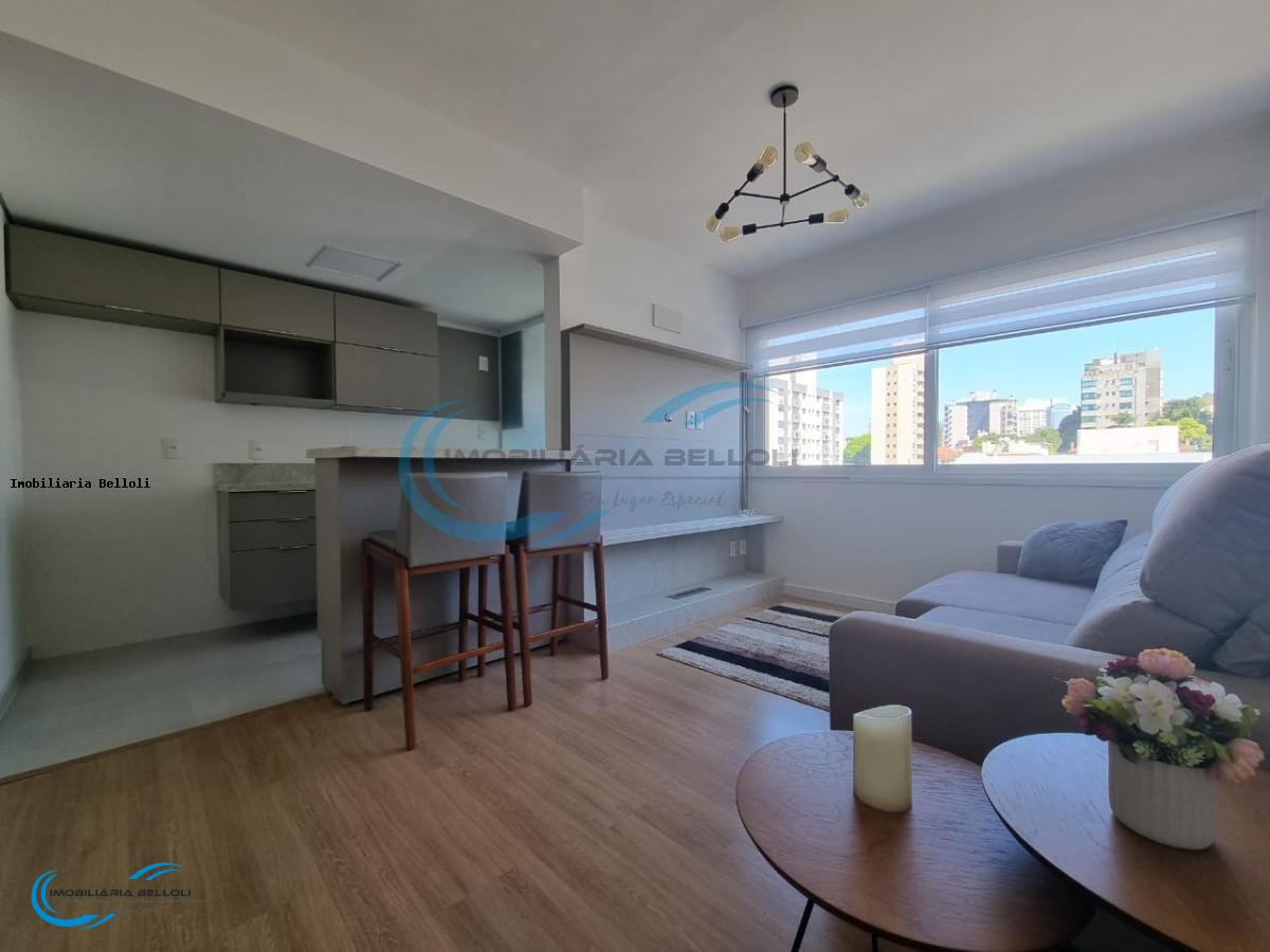 Apartamento com 65m, mobiliado, novo, com 2 dormitorios 1 suíte, living com cozinha americana e churrasqueira, area de serviço 2 vagas.