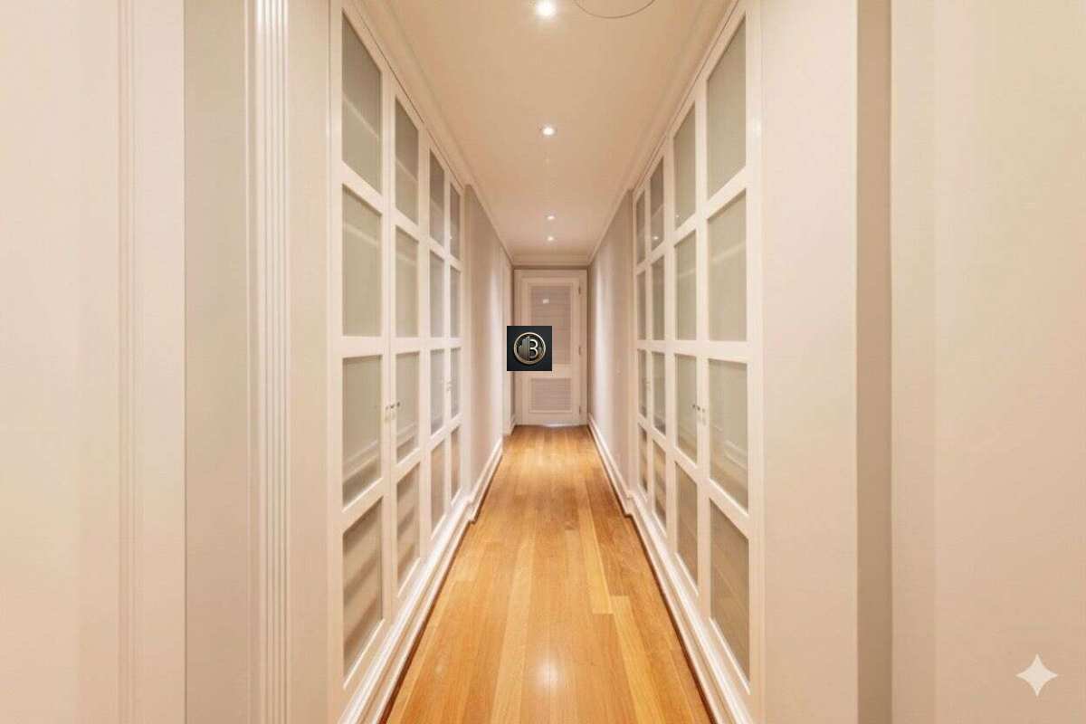 Primeiro pavimento possui living para 4 ambientes, hall social privativo com piso em mármore, porta blindada e elevador codificado, sala de estar com lareira, sala de jantar, sala de Tv, sacada integrada, louçaria, lavabo, copa-cozinha, dependência completa, e lavanderia independente com entrada de serviço.