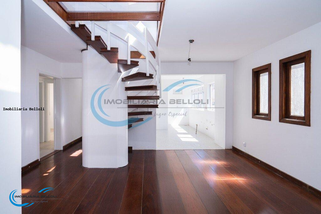 OPORTUNIDADE! Cobertura reformada de 244 m privativos, com muito sol! No pavimento superior, área social com lareira e churrasqueira, lavabo, um espaço para escritório ou 4 dormitório e terraço aberto. No pavimento inferior: 3 dormitórios sendo 1 suíte, cozinha americana, área de serviço com banheiro auxiliar e amplo living com sacada integrada. Cobertura com reforma total na parte hidráulica, elétrica e impermeabilização. 4 vagas simples.