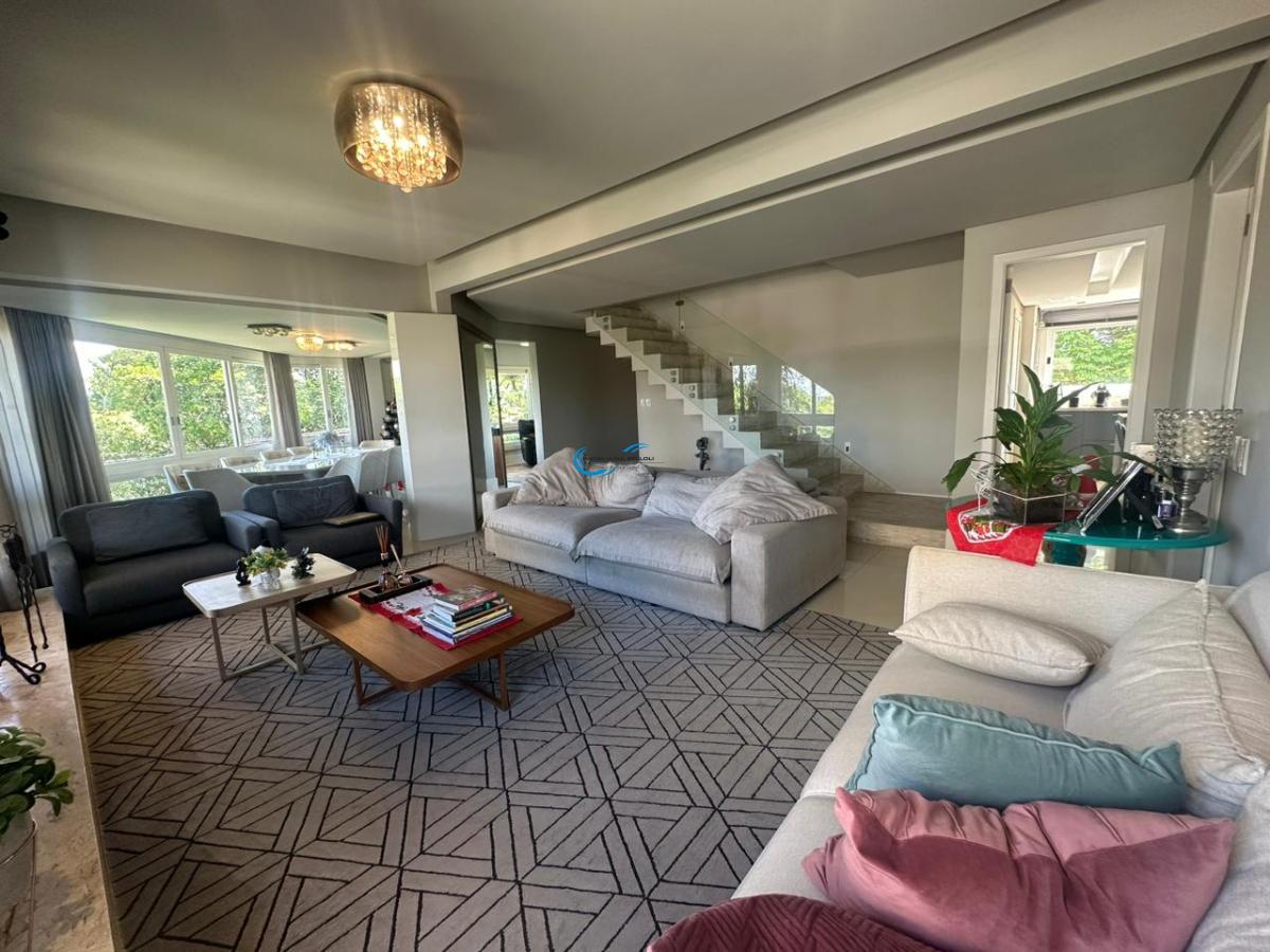 Encante-se com este exclusivo apartamento de 318 metros privativos, ocupando um andar inteiro com deslumbrante vista panorâmica de 360 graus. Desfrute de momentos únicos na área externa, completa com piscina e churrasqueira, ideal para momentos memoráveis com amigos e familiares. O amplo living com lareira proporciona um ambiente acolhedor, enquanto os 3 dormitórios, incluindo uma suíte master com banheira de hidromassagem e vista deslumbrante da cidade, estão elegantemente mobiliados. A cozinha, com ilha central, torna o espaço extremamente funcional para o dia a dia, e o ambiente de jantar oferece uma vista privilegiada para o country clube.