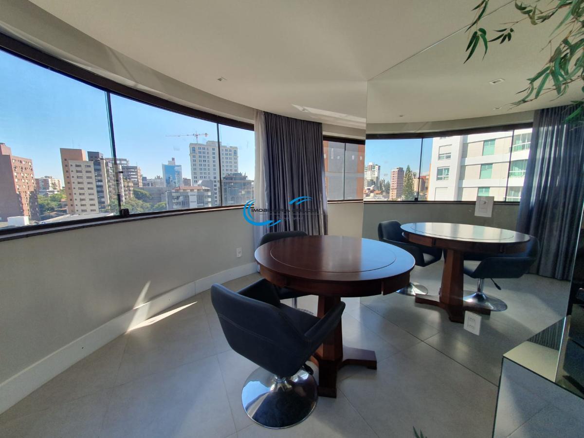 Cobertura duplex espetacular com 326,74m² privativos, mobiliada, com linda vista da cidade, na melhor região do bairro Petrópolis. Na parte de baixo três(3) suítes, uma delas master, sendo todos os banheiros com jacuzzi, piso aquecido e split. Generoso living de três(3) ambientes com lareira e home theater, sala de jantar, lavabo, ótimo gabinete interligado com a sala, ampla cozinha com ilha, copa e elevador para mandar mantimentos para a cozinha de cima, ampla lavanderia separada. No andar de cima temos academia completa, duas salas com lareira, sendo que uma delas tem gabinete integrado, e a outra tem amplo espaço gourmet, sala de jantar, uma grande jacuzzi e saída para o pátio. Finamente decorado por arquiteto com lindos móveis sob medida em todos os ambientes. Excelente ventilação natural e posição solar com incidência de sol o dia todo. Estacionamento com 5 vagas de garagem lado a lado. Elevador codificado, zelador, portaria virtual.