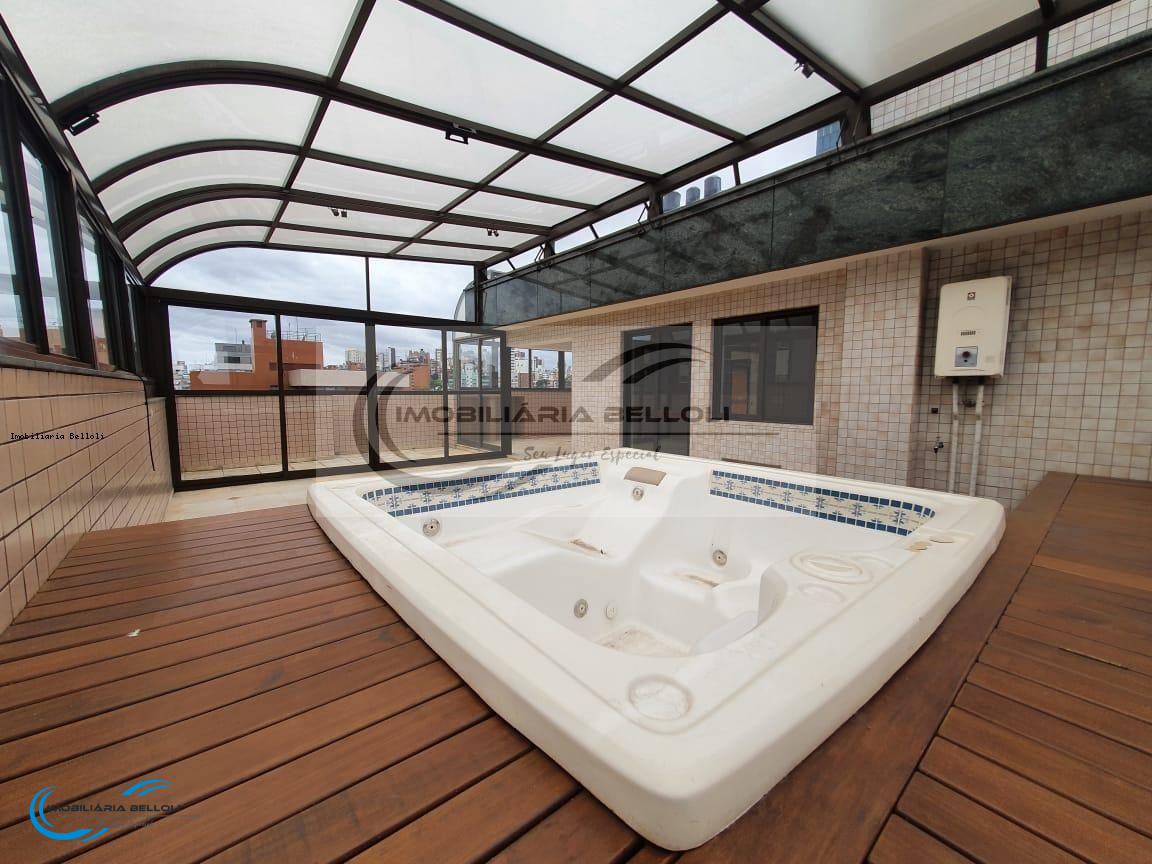Venha viver nesta espetacular cobertura, localizada em frente a praça da Encool, cobertura duplex com 3 dormitorios, 2 suítes, sala de jantar e estar em separados, com lareira e sacadão em L, lavabo, suíte solteiro, suíte casal com closet, banheiro com hidro e chuveiro em separado, copacozinha, área de serviço ampla e dependência de empregada completa, entradas social e de serviço. Piso social em tabuão e escada em madeira de lei com projeto personalizado;